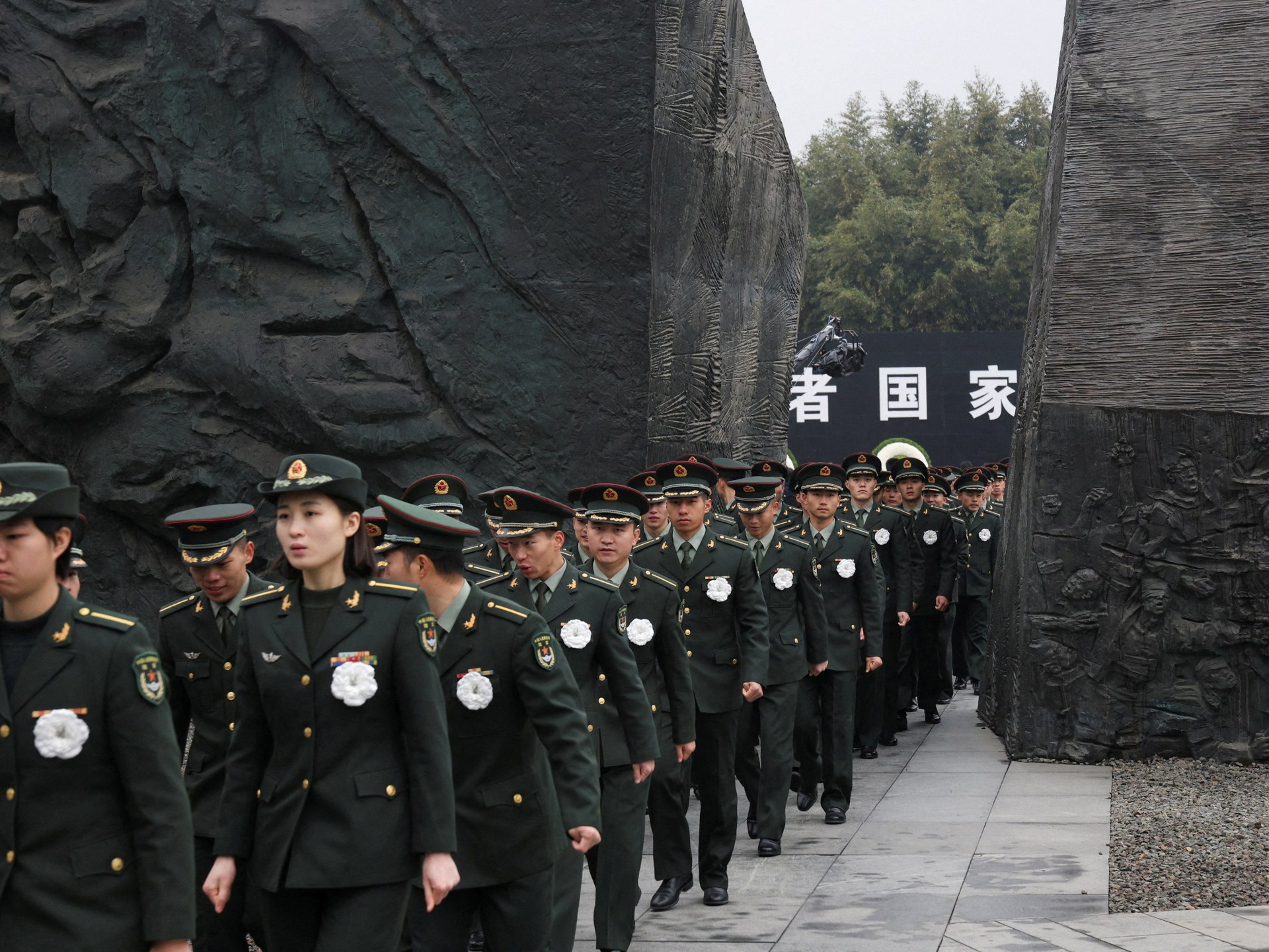 Doves flew over the national memorial centre in Nanjing after the ceremony, which was completed in less than half an hour, in front of an audience that included police officers and schoolchildren.