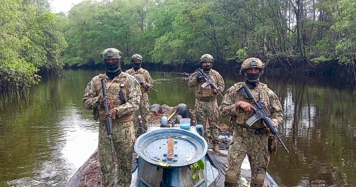 En el lugar de la incautación, los militares ecuatorianos encontraron también 6 lanchas de fibra de vidrio, alrededor de 6,000 galones de combustible, 7 motores fuera de borda, 1 escopeta y equipos de navegación, entre otros elementos.