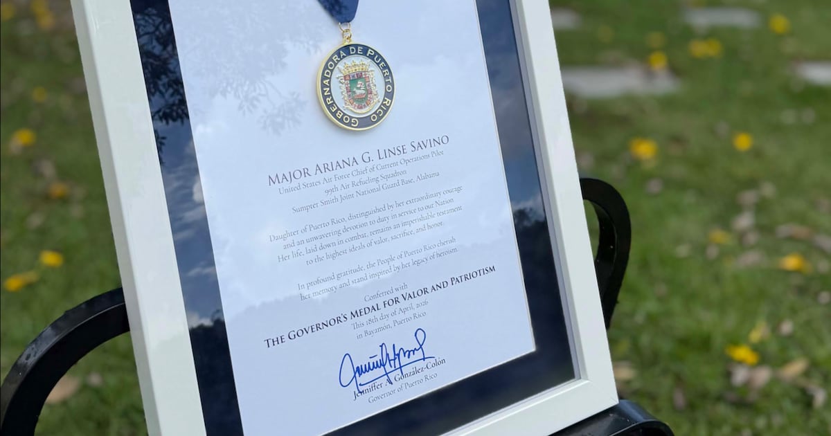 La gobernadora de Puerto Rico, Jenniffer González Colón, otorgó de manera póstuma la Medalla de la Gobernadora a la mayor Ariana G. Linse Sabino, una de las seis personas de la Fuerza Aérea de Estados Unidos que falleció el pasado 12 de marzo en un accidente aéreo ocurrido en Irán.